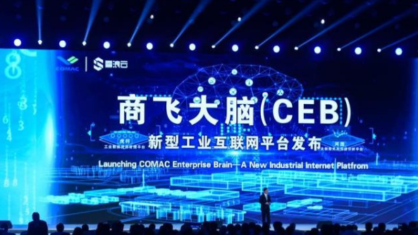 中國商用飛機有限公司代表在介紹“民用飛機制造5G創(chuàng)新示范應用”