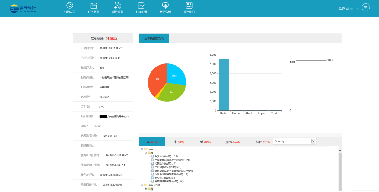源代碼安全漏洞掃描分析結(jié)合結(jié)合OWASP十大Web漏洞以及設(shè)備、CVE公共漏洞字典表、CWE、CNVD等權(quán)威漏洞庫規(guī)則集、軟件廠商公布的漏洞庫,結(jié)合專業(yè)源代碼掃描工具對各種程序語言編寫的源代碼安全漏洞掃描分析。