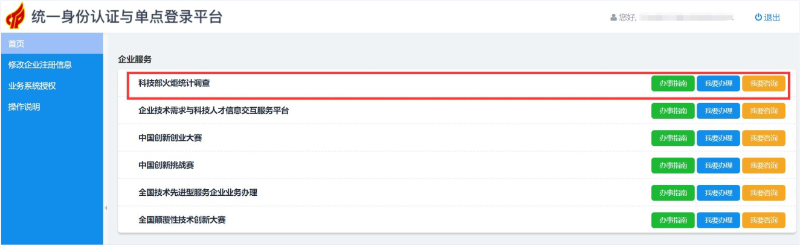 第三步:找到“科技部火炬統(tǒng)計調(diào)查”,點擊“我要辦理”